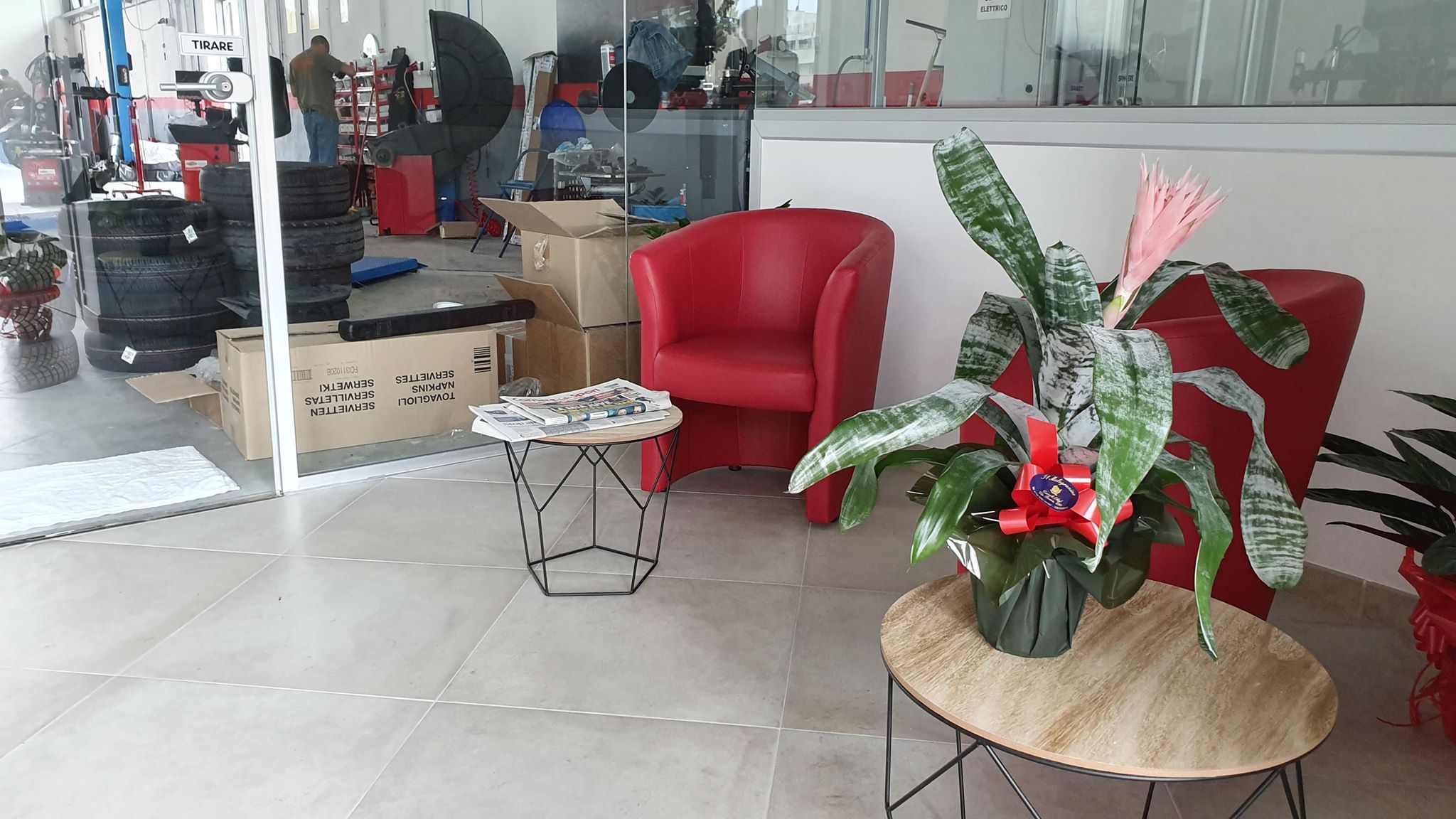 L’area accoglienza è dotata di una reception dove il cliente viene accolto e dopo una fase colloquiale sui lavori da effettuare che vengono concordati, l’auto viene presa in carico dal personale che la introduce nell’area esclusivamente riservata alla lavorazione. I clienti però hanno a disposizione una sala relax con comode poltroncine dove si può approfittare per riposarsi durante l’attesa. Tutto con vetrate a vista, perchè la trasparenza del lavoro è alla base della filosofia di Tecnogomme.
