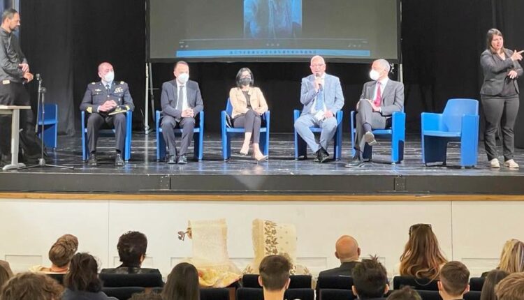Presente all’evento anche la dottoressa Lavinia Biagiotti Cigna, componente del comitato per gli anniversari di interesse nazionale ed una rappresentanza del liceo musicale IIS Via Roma 298 (Ex Majorana-Pisano), con il Dirigente Scolastico Eusebio Ciccotti, che ha suonato l’Inno di Mameli in apertura e due classi dell’I.C. “Leonardo Da Vinci” con la Dirigente Scolastica Gabriella De Marco. A fine cerimonia ho omaggiato il Ministro Fabiana Dadone con la donazione di una riproduzione della Triade Capitolina in compagnia dell’ Associazione “La Vunnella” e la Presidente Agnese Bufalieri vestite con gli abiti tipici di Montecelio. Prezioso, inoltre, il contributo degli interpreti Lis per arrivare anche alla comunità sorda della nostra Città.