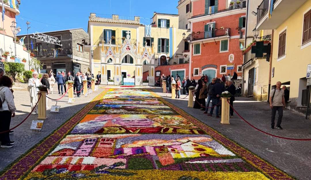 GERANO – Si è conclusa ieri a Gerano l’edizione 2026 dell’Infiorata, considerata la più antica d’Italia, che per due giorni ha trasformato il borgo della Valle dell’Aniene in un suggestivo percorso di colori, profumi ed emozioni, favorita anche dal bel tempo che ha accompagnato l’intera manifestazione.
