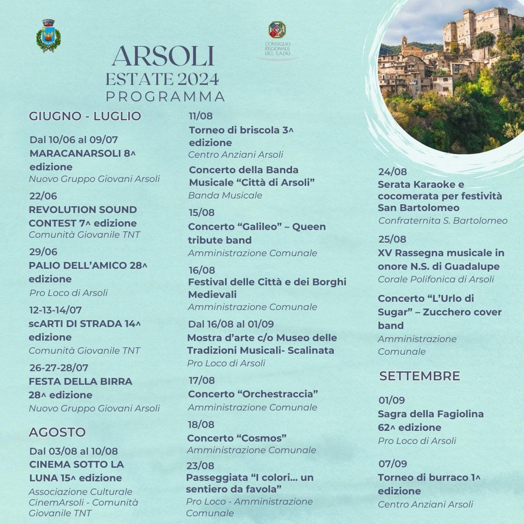 Prosegue in grande stile l’estate arsolana 2024, il programma degli eventi