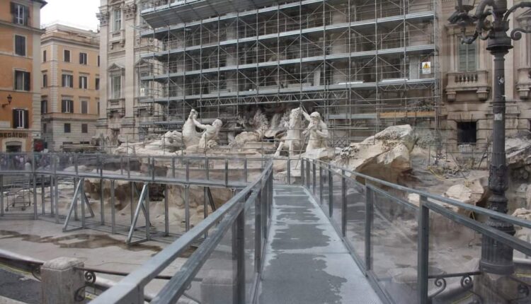 Roma – Proseguono le operazioni di cantierizzazione per consentire un importante intervento di manutenzione straordinaria della Fontana di Trevi.