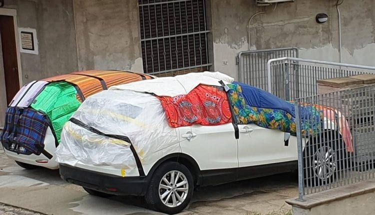 E intanto, in nome del notorio motto “A volte ritornano”, i nostri cittadini non vogliono farsi cogliere impreparati e lanciano una “morbida” sfida alla grandine: tanti hanno pensato, infatti, di posizionare, a mò di scudo, materassi, teli, lenzuola, trapunte, parasole e canotti sulle autovetture. C’è chi addirittura ha piazzato delle sedie.