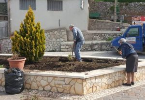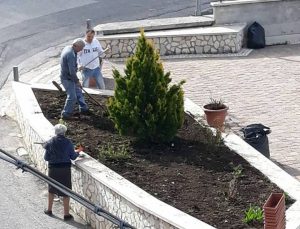 Colli di  Monte Bove – Aria di primavera nella bella e suggestiva Colli di Monte Bove, frazione del Comune di Carsoli dalla quale si gode di aria pura, un panorama mozzafiato e tanta accoglienza. I collesi tengono molto al loro paese cosicchè è stata messa in atto una task force di lavoro con protagonisti anziani del luogo, ma anche giovani e meno giovani. Tutti al lavoro per dare decoro urbano all’aiuola che accoglie tutti nella piazza Primo Maggio. E così via alle erbacce, e a piantare fiori per rendere l’ambiente più gradevole. Una bella testimonianza di senso civico e di attaccamento alla propria realtà territoriale.