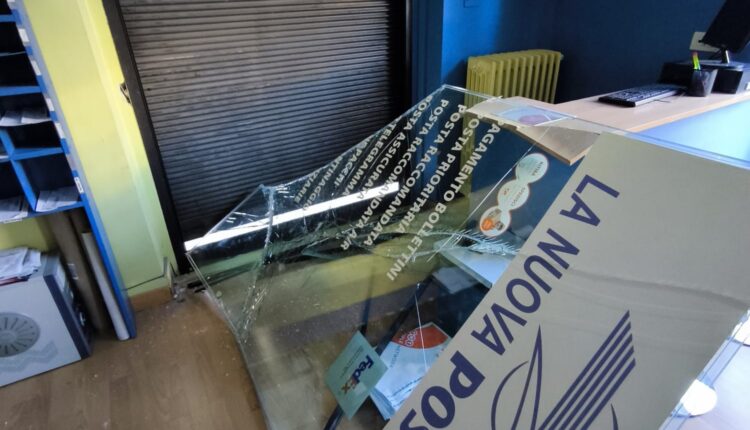Oltre al furto, sono ingenti i danni causati dall’irruzione, con la vetrata spaccata e materiale sparso ovunque.