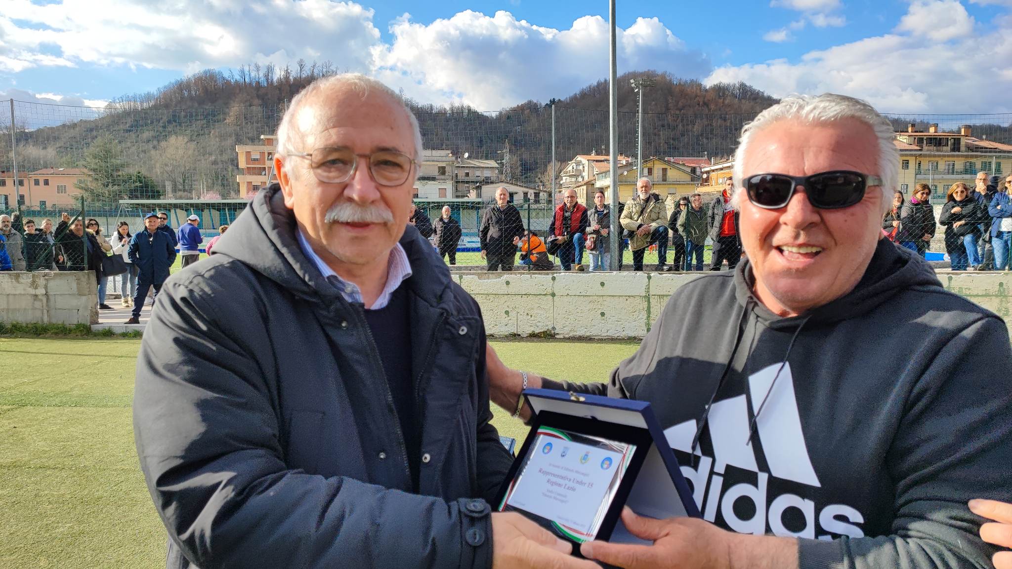 Poi il vice presidente dell’Asd Carsoli Nino Cardilli ha consegnato anch’egli alle rappresentanze la targa dell’evento. Al termine della prima cerimonia fischio d’inizio per la partita degli Under 19 rappresentative Lazio Abruzzo.