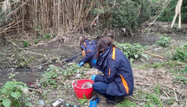 ROMA – Mattinata di prelievi  nelle acque lungo il fosso di Pratolungo Casilino, nel tratto da Due Colli a Prato Fiorito, al fine di verificare lo stato d’inquinamento e gli sversamenti abusivi che gravano sul fosso.