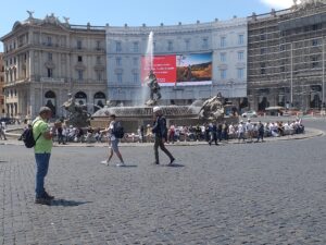 La piazza centrale nei pressi di Termini aveva un diametro di estensione di vuoto di circa un deserto, tutto bloccato dalle forze dell’ordine, servizi pubblici deviati e veicoli assenti, Roma in pieno giorno congelata non in bassa temperatura, ma in fornace.