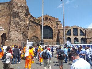 ROMA – Ore 13:45 P.z della Repubblica si tinge di caschetti rossi e bianchi, sono gli operai, ingegneri e operatori nel campo dell’edilizia, sole cocente in data 18 maggio, tutti in gran numero a protestare per la giustizia sociale, per i diritti dei lavoratori che ancora dopo secoli di feroci battaglie il pesce viene servito ancora marcio.
