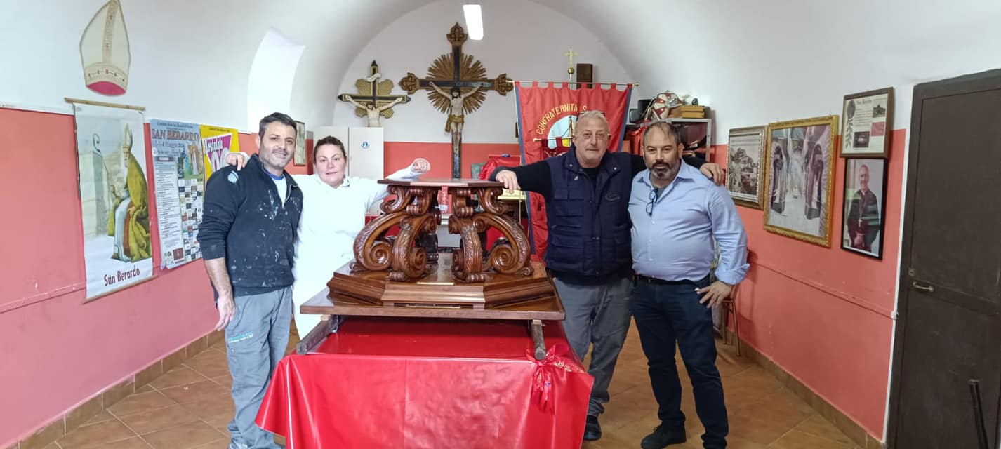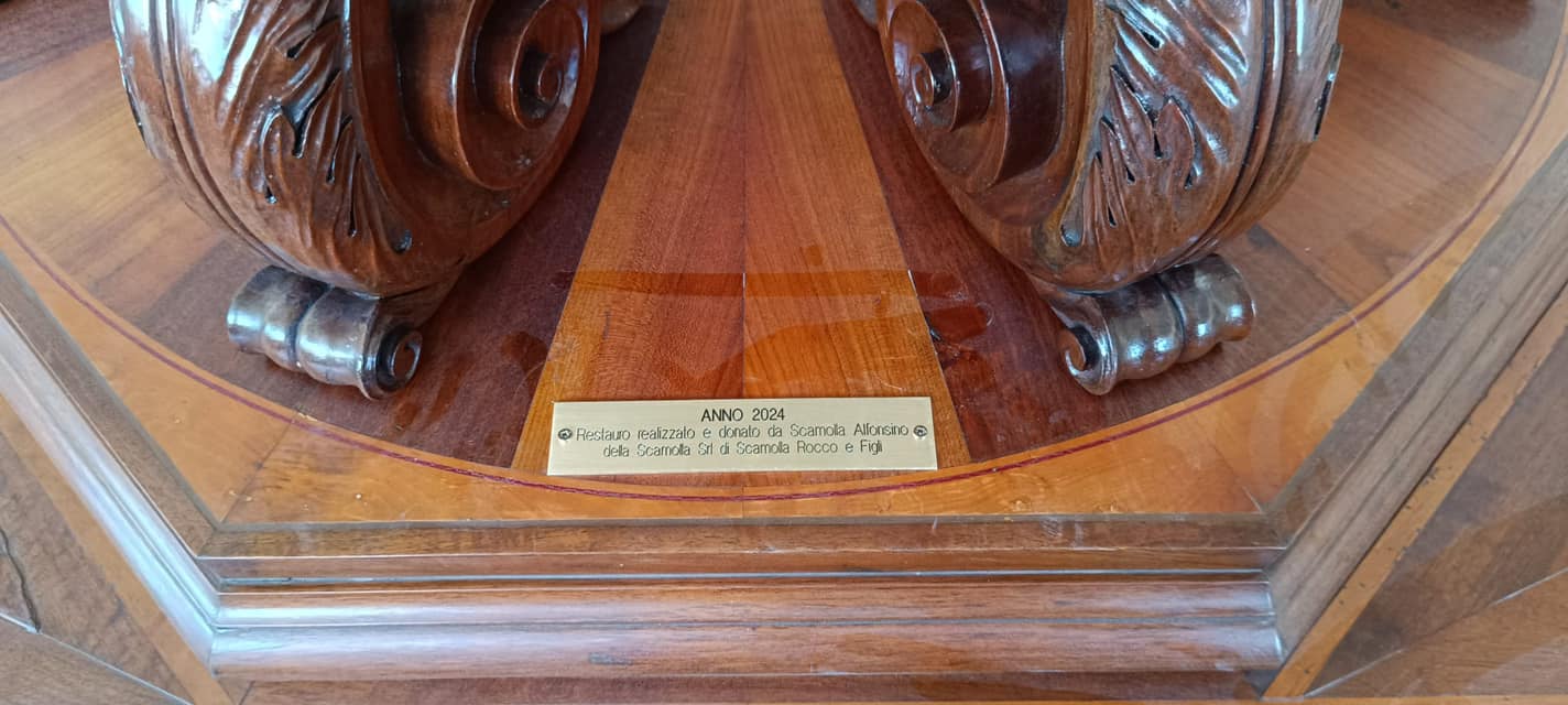 PESCINA – Un vero e proprio tributo all’arte del legno quello profuso dall’azienda Alfonsino Scamolla di Pescina che ha provveduto motu proprio e con totale gratuità a restaurare alla regola dell’arte il basamento processionale per il busto di San Berardo, patrono di Pescina e di Colli di Monte Bove. “Una gioia immensa donare al nostro Patrono un lavoro che ho realizzato con tanto amore e devozione insieme alla Scamolla Srl – ha affermato Alfonsino Scamolla sui social – che ha presentato l’ultimazione del minuzioso lavoro – un’emozione indescrivibile quella provata nel riportare al suo originario splendore un’opera del 1930. E ancora maggiore sarà l’emozione che proverò nel vederlo in processione su di essa. Grazie alla Confraternita di San Berardo di Pescina che mi ha permesso di realizzare e donare questo restauro e sempre grazie ai confratelli di Colli di Monte Bove. Viva San Berardo”.