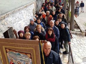 Vallepietra – Intensa mattinata del primo maggio al Santuario di Vallepietra per la riapertura dell’anno liturgico ai fedeli. E’ stata una occasione di fede e devozione, e tutte le compagnie con propri stendardi sin dalle prime ore della mattina hanno raggiunto il suggestivo luogo dei devoti alla Santissima. Come tradizione vuole, dopo la disposizione degli stendardi si è svolta la processione verso il Santuario, ed è stato il rettore Monsignor Alberto Ponzi ad aprire ufficialmente la porta dando via alla nuova stagione dei pellegrinaggi.
