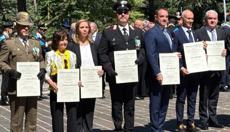 Dopo l’alzabandiera e la deposizione della corona di alloro al monumento dei caduti, venivano letti i messaggi del Ministro della difesa Guido Crosetto e del Presidente della Repubblica Sergio Mattarella. Al termine delle celebrazioni ufficiali venivano consegnati dal Prefetto dell’Aquila Dott. Giancarlo Di Vincenzo i diplomi per il conferimento delle Onorificenze dell’Ordine al Merito della Repubblica Italiana. Tra i 21 riconoscimenti c’era anche l’Appuntato Scelto qualifica speciale Andrea Ceccarelli in servizio presso la Caserma dell’Arma dei carabinieri della città di Avezzano accompagnato dal vicesindaco della città, dott. Domenico Di Berardino. Grande orgoglio per la città di vedere riconosciuto un così grande merito al carabiniere Andrea Ceccarelli, merito e onorificenza che si conferisce a coloro che si distinguono nel bene e nei valori della nostra Nazione. Un traguardo importante che premia l’impegno, la dedizione e il servizio reso negli anni alla nostra comunità. L’Ordine al Merito della Repubblica Italiana istituito con la Legge 1951, n. 178, e’ la più alta onorificenza della Repubblica e viene conferito a coloro che si sono distinti verso la Nazione nei campi delle scienze, lettere, arti, economie, pubbliche cariche, così come per attività sociali, filantropiche e umanitarie o per lunghi e segnalati servizi nelle carriere civili e militari. Il carabiniere Andrea Ceccarelli, con il suo impegno concreto e forte senso civico e morale, ha saputo incarnare appieno i valori alla base di questa prestigiosa onorificenza.