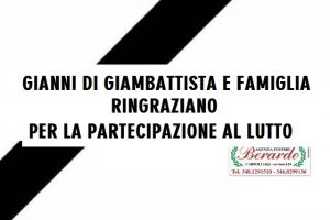 Gianni Di Giambattista e la famiglia tutta ringraziano di cuore tutti coloro che in questo triste momento hanno espresso nelle diverse forme consentite dal difficile periodo di emergenza Covid 19, il loro affetto e vicinanza per la perdita della madre