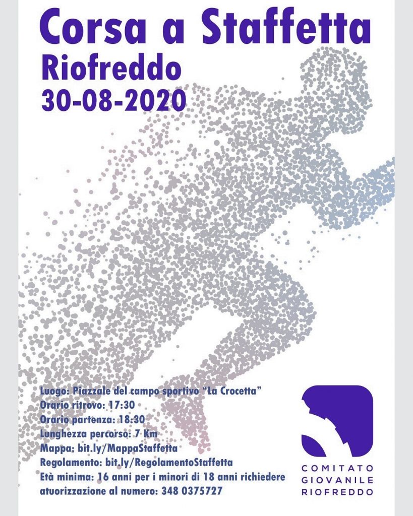 Riofreddo – Domenica 30 agosto a Riofreddo si svolgerà l’attesissima “Corsa a Staffetta”, organizzata dal Comitato Giovanile. Il percorso ha una lunghezza complessiva di 7 chilometri. L’appuntamento è per le 17:30 al piazzale del Campo Sportivo “La Crocetta”, punto di ritrovo di tutti i partecipanti. L’orario di partenza è previsto alle ore 18:30.