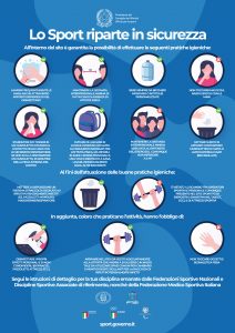 Sul sito dell’Ufficio per lo sport è inoltre disponibile la locandina informativa da utilizzare liberamente all’interno di palestre, piscine, centri e circoli sportivi, pubblici e privati, e le altre strutture dove si svolgono attività dirette al benessere dell’individuo attraverso l’esercizio fisico.