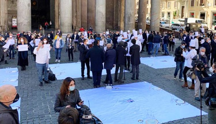 Ristoratori in piazza a Roma: “ci stanno massacrando, vogliamo riaprire non siamo untori”