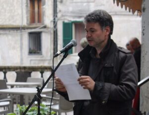 Questo è il caso della scrittura di Marco De Simone, poeta vicovarese, autore di una vasta produzione in versi che non ha ancora raggiunto la carta e che però risulta interessante proprio nella sua natura liminale, fuori dal giro. Per quanto nei testi di De Simone si rintraccino alcune forme un po’ automatiche e auto-previste tipiche delle esperienze letterarie spontanee, la sua attività è secondo me interessante per più motivi. In primis, proprio il fatto che casi come quello di De Simone vadano approcciati con l’ottica di muoversi nel perimetro della letteratura, che se da una parte cede ad alcune ingenuità dall’altra acquista in specificazione dell’esperienza, che è quella – in questo ma anche in molti altri casi – del paese. E infatti la scrittura di De Simone è pienamente coinvolta nella realtà socio-simbolica del paese; non solo nella forma esplicita della scrittura in dialetto, ma anche e più profondamente in un’atmosfera malinconica, in un posizionamento laterale, che attraversa gran parte della sua produzione (per altri aspetti aperta invece a modalità sarcastiche e stornellare).