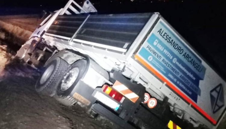 CARSOLI – Una fuga durata poco quella dei ladri che nella serata di ieri avevano rubato da un deposito in pieno centro un camion gru della Alessandro Arcangeli Store di Carsoli. L’azienda utilizza il mezzo per le consegne in tutta Italia, ed è ben identificato anche attraverso le scritte pubblicitarie in ogni dove. I  Carabinieri di Avezzano lo hanno trovato questa notte durante una azione di controllo del territorio. E’ fuori strada, con danni peraltro importanti, probabilmente i ladri non sapevano nemmeno bene guidarlo, oppure erano in stato di ebbrezza. Questa mattina gli interventi di recupero.