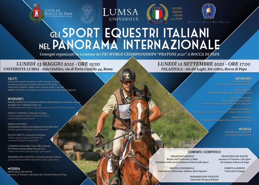 Rocca di Papa – Il Comune di Rocca di Papa, in collaborazione con l’Università Lumsa, la Società Italiana di Storia dello Sport e la Federazione Italiana Sport Equestri, promuove un convegno per approfondire nel dettaglio, e in previsione dei prossimi campionati mondiali del mese di settembre, gli sport equestri e la storia del centro equestre federale dei Pratoni del Vivaro. Un convegno organizzato in due giornate: la prima il 23 maggio presso l’Università Lumsa di Roma e la seconda il 12 settembre, presso la conference hall di “Palazzola” a Rocca di Papa, a cui prenderanno parte importanti giornalisti, esperti e sportivi della disciplina equestre.