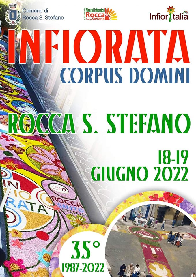 Rocca Santo Stefano – Solo 5 giorni separano dalla secolare infiorata di Rocca Santo Stefano, l’evento più atteso da tutta la comunità, e non solo. E’ tutto pronto per la 35^ edizione, che avrà luogo nel giorno del Corpus Domini, guidata dai grandi maestri infioratori di Rocca Santo Stefano.