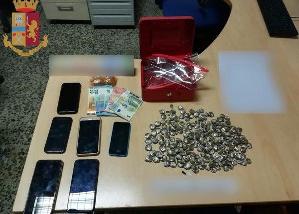 La perquisizione domiciliare ha permesso, inoltre, di trovare all’interno di una cassetta in ferro, 0,50 grammi di cocaina, due sacchetti in plastica contenenti 191 involucri in cellophane di hashish dal peso complessivo di 205 grammi, 105 euro in contanti, un foglio di carta manoscritto dove sono riportati nomi di persone affiancati da somme di denaro e 5 telefoni cellulari. Il ragazzo è stato arrestato per cessione e detenzione di sostanza stupefacente e denunciato in stato di libertà per porto abusivo di armi od oggetti atti ad offendere.