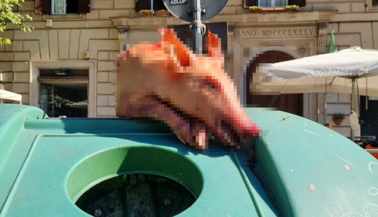Roma, a Corso Italia macabra scoperta: testa di maiale lasciata sopra a un cassonetto