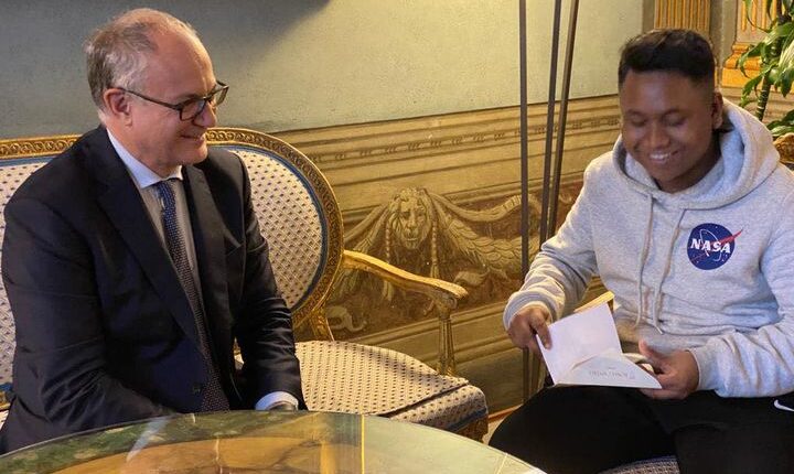 ROMA – Non si sentono tutti i giorni notizie positive, tra stragi, crolli, incidenti “chi più ne ha, più ne metta” finalmente come un raggio di sole che penetra i blocchi nuvolosi dopo un nubifragio è proprio Abir un ragazzo che che qualche giorno fa si è reso protagonista di un gesto di profonda civiltà restituendo alle forze dell’ordine un portafoglio trovato per strada. Grazie alla sua onestà, l’anziano proprietario è potuto tornare in possesso di denaro e documenti. Per tale gesto è stato invitato e ricevuto in Campidoglio da Sindaco Gualtieri che lo ha voluto premiare come esempio di civiltà regalandogli per un anno l’abbonamento annuale ai mezzi di trasporto di Roma Capitale.