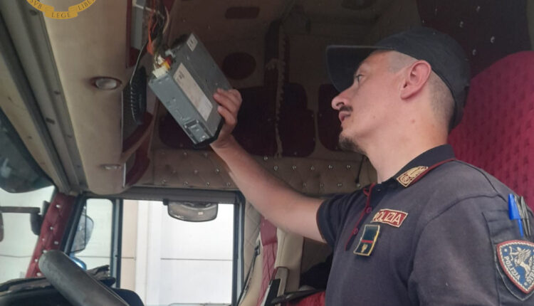 Tutto il dispositivo veniva smontato e sequestrato mentre l’autista veniva sanzionato con oltre 1700 euro di multa, con il conseguente ritiro della patente per la successiva sospensione da 15 giorni a 3 mesi e la decurtazione di 10 punti.