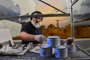 L’esecuzione della cappella è stata infatti effettuata nel periodo della pandemia. Don Maurizio la commissionò a Rodolfo Papa poco prima della chiusura di marzo; Papa l’ha pensata e ne ha disegnato i cartoni nella solitudine del suo studio proprio durante marzo e aprile e ha cominciato a dipingerla non appena è stato possibile, muovendosi nella quotidianità di una parrocchia, ormai fatta di disinfettante e distanziamenti, ma soprattutto tra le paure e le speranze contemporanee.