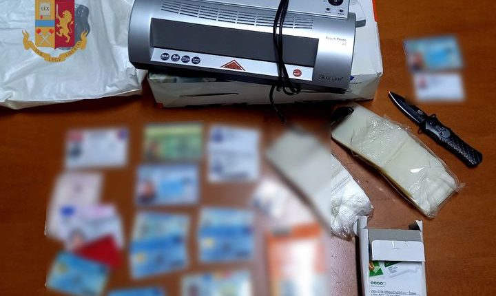 Per il 57enne invece, con vari precedenti di polizia, si è proceduto alla perquisizione domiciliare, durante la quale è stata rinvenuta una busta di grosse dimensioni contenente varie carte di identità, alcune false e altre provento di furto, patenti, tessere sanitarie, due tessere metrebus, una plastificatrice universale e due confezioni di lastre di laminazione e “pouches” lucide per plastificare cartoline.