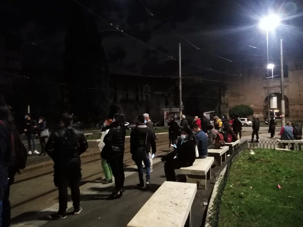 Dopo le 18 i lavoratori escono dal proprio ufficio o posto di lavoro, chiudono il proprio bar o locale per fare ritorno a casa, eliminando dalla vita ogni forma di socialità, ed evitando ogni occasione di “assembramento” per la propria e altrui salute. Ma è nel tragitto la vera questione che fa crollare tutto il castello di carte. A Roma, come in tutte le grandi città, dopo le 18 inizia la seconda parte della giornata, quella più buia e pericolosa in cui i pendolari tentano di raggiungere la propria abitazione con i mezzi pubblici cercando di evitare i contatti, ma quale luogo migliore per creare assembramenti e “forzata” socialità?