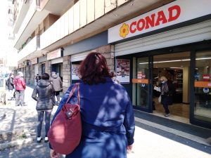 L’atmosfera romana è surreale. Sono pochissime le macchine ai semafori, e rare le persone in strada. C’è chi porta a spasso il cane, e qualche corridore (forse ancora troppi, in realtà) che insiste nel suo allenamento. Ma quasi tutti sono in fila al supermercato: code di gente che attendono il proprio turno per entrare. Ci può volere anche un’ora di attesa. E una volta entrati non ci si può “intrattenere”: bisogna sbrigarsi ad acquistare, perché fuori c’è altra gente che aspetta.