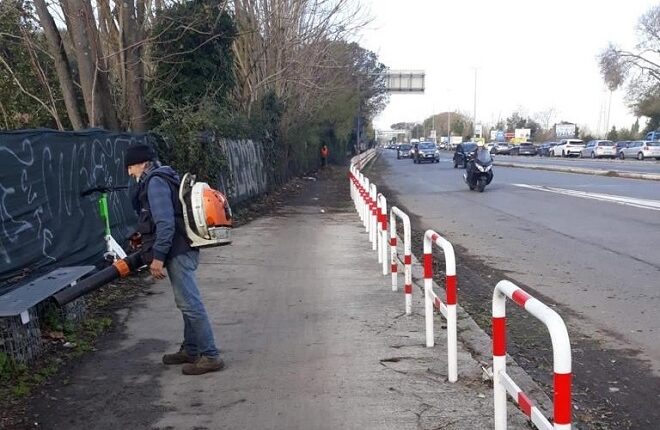 Gli interventi sono stati svolti su 70 chilometri di piste ciclopedonali con un importo complessivo di circa 200mila euro del bilancio capitolino.