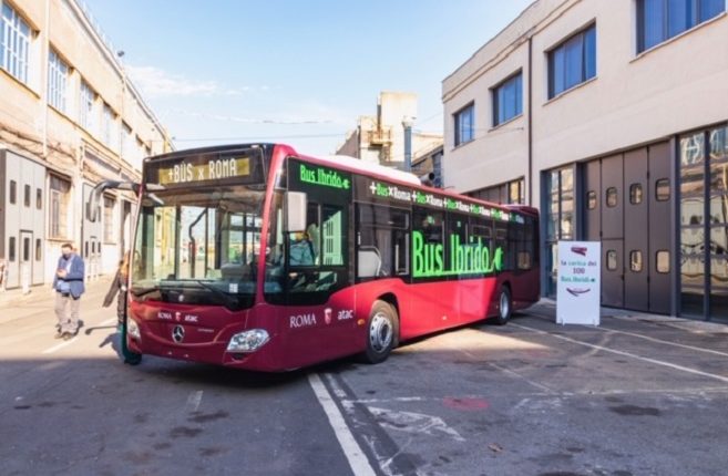 Roma – Il primo bus ibrido della flotta Atac è arrivato a Roma. Si tratta di un prototipo dei 100 autobus ibridi che entreranno in servizio a partire dall’estate prossima. La sindaca Virginia Raggi lo ha presentato oggi al deposito Atac in via Prenestina, insieme all’assessore alla Città in movimento Pietro Calabrese, l’AU di Atac Giovanni Mottura e i vertici di Daimler Buses|EvoBus Italia – l’AD Heinz Friedrich, il Direttore Commerciale Clienti Pubblici Michele Maldini e il Key Account Manager Gianluca Selvaggi.