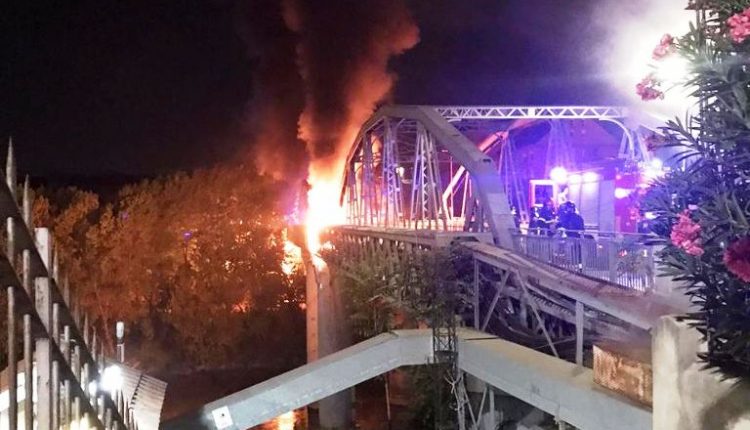 Non ci sarebbero persone coinvolte nell’incendio. Le fiamme, ancora di origini ignote, stanno riguardando anche una condotta del gas sotto al ponte, oltre alla vegetazione intorno e alcuni ricoveri di fortuna. Una parte del ponte è crollata.
