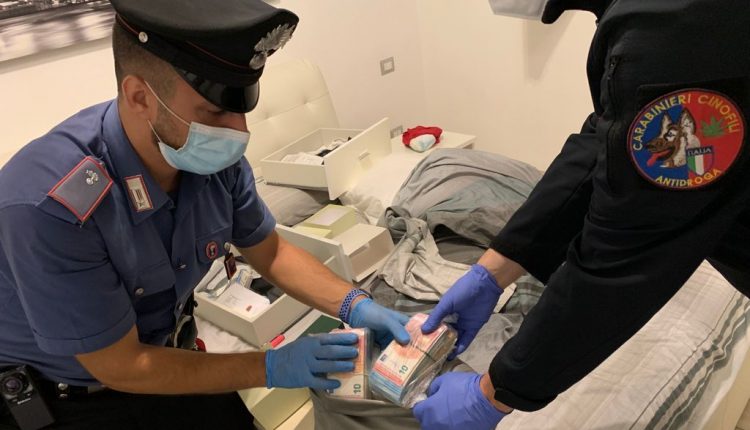 A casa di D.V.F., inoltre, i Carabinieri hanno rinvenuto e sequestrato altri 50.000 euro in contanti nascosti in vari anfratti dell’abitazione, confezionati sottovuoto in pacchi di cellophane pronti per essere nascosti ed eventualmente reinvestiti nel traffico di droga.