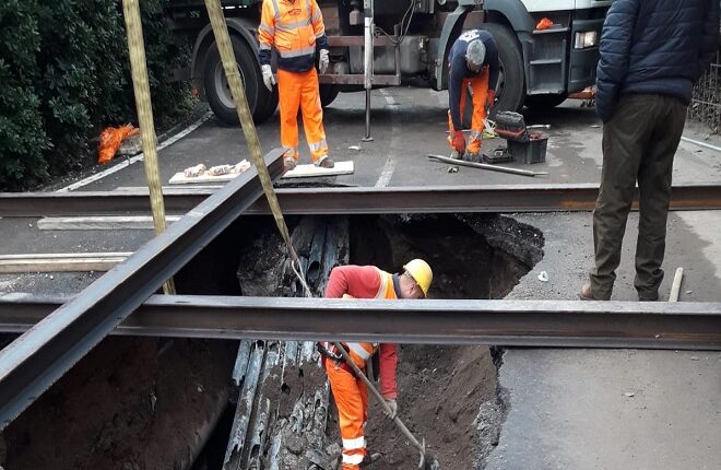 Quindi Acea ha immediatamente provveduto a ripristinare il manufatto lesionato e solo alla fine di questo lavoro molto impegnativo, il Csimu ha potuto ripristinare il manto stradale.