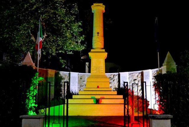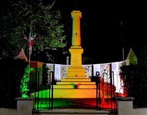 Roviano accende il tricolore in notturna al monumento dei caduti