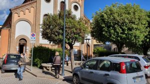 La piazza principale di Roviano è invece dominata dalla chiesa dedicata alla Madonna del Santo Rosario, il cui culto, tanto caro al popolo rovianese, nasce nel lontano 1867 quando, durante un’epidemia di colera, le preghiere di intercessione a Lei rivolte salvarono molti abitanti. La statua di questa Madonna, originariamente posta nella chiesa di San Giovanni Battista Decollato, era poi stata trasferita in una chiesetta dedicata a Sant’Antonio fino al bombardamento del 1944 che la distrusse. Recuperata la statua, l’allora parroco Monsignor Mario Sargenti, manifestò al popolo il desiderio di costruire una grande chiesa e di dedicarla proprio a questa Madonna come segno di ringraziamento per la protezione elargita al paese. Il popolo si mobilitò per realizzare il nuovo centro di culto e così, tra una pietra e una preghiera, in soli quattro anni, dal 29 marzo 1947 – giorno in cui il Vescovo Monsignor della Vedova pose la prima pietra – all’8 luglio del 1951, la chiesa fu edificata. Costituita da tre navate con tetto a capriate, presenta tre altari dedicati rispettivamente a Sant’Anna, al Sacro Cuore e alla Madonna del Santo Rosario. Oggi, insieme alla canonica e al giardino, è il fulcro della vita religiosa della comunità di Roviano. Nel 1982 vi sono stati realizzati due affreschi ad opera del pittore tedesco M. Dietrich. In occasione del grande Giubileo del 2000, l’artista ligure Vittorio Venturelli ha realizzato nell’abside un mosaico raffigurante la discesa dello Spirito Santo. Nel 2002, sotto la navata sinistra è stata traslata la salma di Mons. Mario Sargenti, parroco di Roviano dal 1935 al 1972.