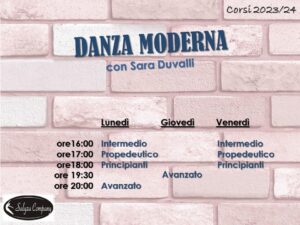Con Sara Duvalli: Danza Moderna, Danza Classica, Strong Body, Pilates e Fitdance. Con Lucia Perozzi: Yoga Nidra. Con Fabio Bartolini & Sheila Iannotti: Salsa e Bachata. Con Antonio Tarquini: Yoga. Con Anna Baciotti: Zumba e Balli di gruppo. Con Alessandra Fortuna Zibellini: Recitazione e dizione.