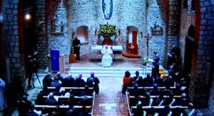 Ai piedi del Cristo crocifisso, per es., la preghiera si trasformò in contemplazione, fino all’immedesimazione: Francesco si trovava come sospeso tra la profondità della sua psiche e la trascendenza di Dio: “Sommo e glorioso Dio, illumina le tenebre del cuore mio, e dammi fede retta, speranza certa e carità perfetta, saggezza e conoscimento, o Signore, affinché io faccia il tuo santo e verace comandamento” (Preghiera davanti al Crocifisso, in K. Esser, Gli Scritti di S. Francesco d’Assisi, Ed. Messaggero, Padova 1982, pp. 452-453).