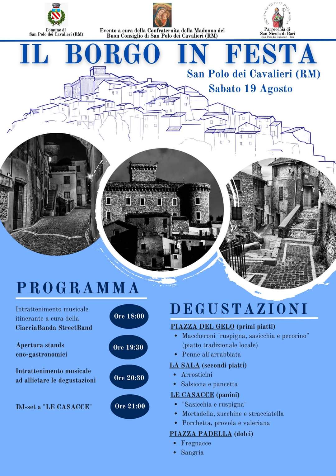 SAN POLO DEI CAVALIERI – Un evento particolarmente atteso a San Polo dei Cavalieri: sabato 19 agosto il Borgo è in festa. Di seguito il dettaglio evento: