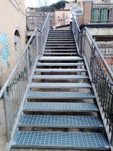 San Polo dei Cavalieri – Realizzata a San Polo dei Cavalieri la nuova scala in ferro – solida, pulita, sicura – posta in opera ieri e che collega Piazza Marconi al percorso per il centro sportivo dei “Frianilli”.