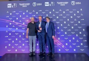 A consegnare il premio ad Amadeus, presso la sala stampa dell’Ariston, sono stati, nella giornata di oggi, il Presidente di Assomusica Carlo Parodi e il Vicepresidente dell’Associazione Fulvio De Rosa.