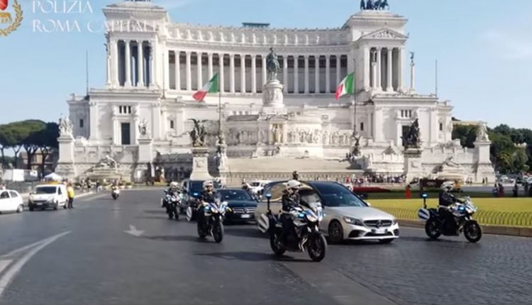 Scomparsa di Raffaella Carrà, vicinanza della Polizia di Roma Capitale. Feretro scortato dagli agenti motociclisti