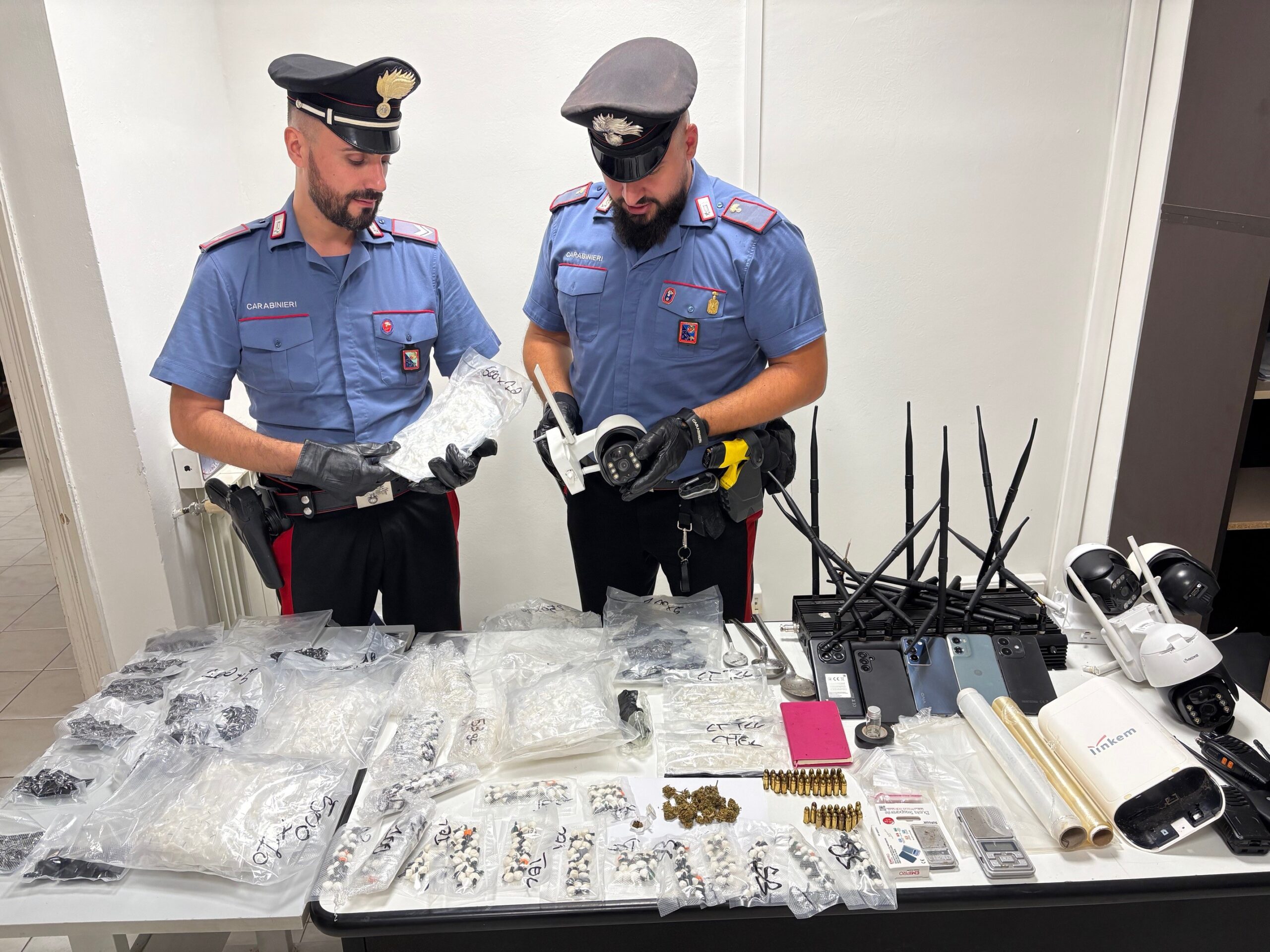 La mirata attività ha permesso ai Carabinieri di raggiungere un’area sensibile della città, consentendo il rinvenimento di uno zainetto incustodito in un androne di un palazzo di edilizia popolare dove all’interno sono stati trovati 1 kg di crack, 480 g di hashish e ulteriori 377 g di cocaina, oltre a 55 proiettili calibro 7,65.