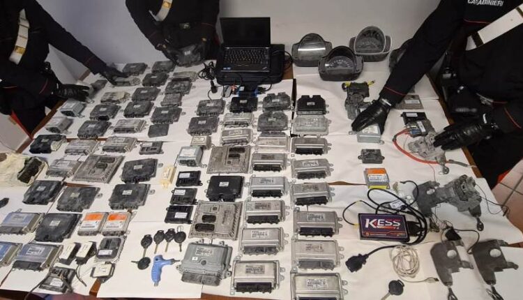 Nel garage, inoltre, i Carabinieri hanno rinvenuto parti meccaniche di autovetture, tuttora in corso di catalogazione, 45 centraline elettroniche, tre chiavi per Smart non programmate, un kit elettronico per la codifica delle chiavi, 2 motori di Smart Brabus, attrezzi e documenti vari.