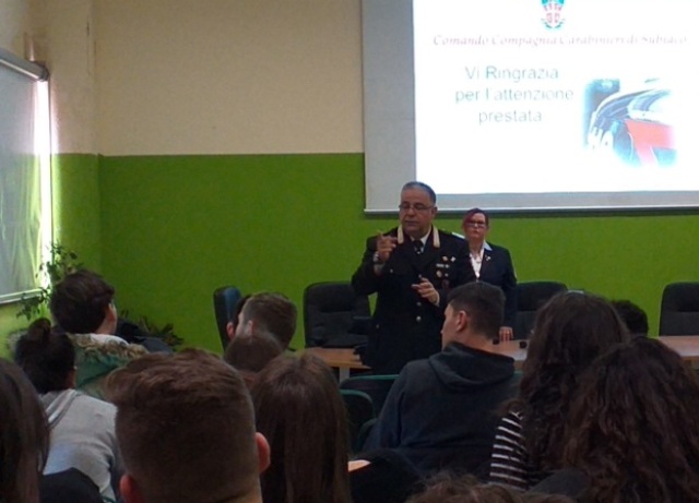Subiaco – Nel quadro delle iniziative volte a diffondere la cultura della legalità e la vicinanza delle Istituzioni ai cittadini, nella giornata di ieri i Carabinieri di Subiaco hanno incontrato gli alunni dell’Istituto Superiore di Istruzione Braschi-Quarenghi di Subiaco.