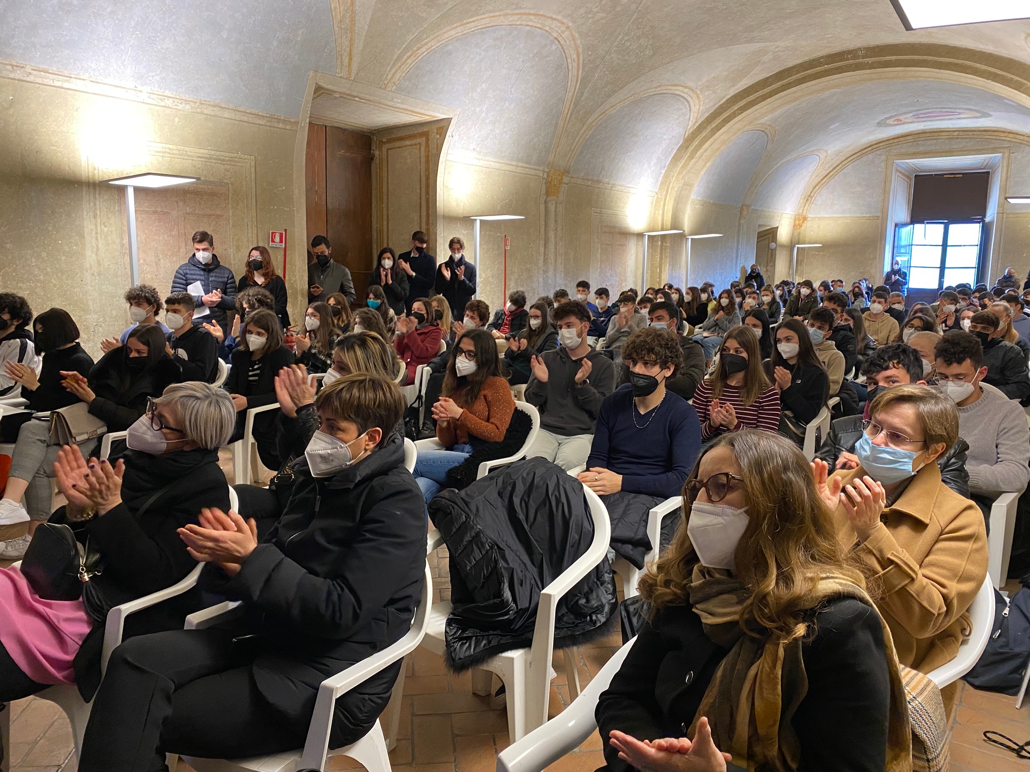 Era composta da 250 studenti la rappresentanza delle classi III, IV e V del Liceo I.I.S. Borsellino Falcone che ha seguito in contemporanea la voce di Edith Bruck da tre sale differenti di Palazzo Rospigliosi (Salone delle Bandiere, Salone delle Feste, Sala Formazione dello Spazio Attivo LOIC di Lazio Innova).
