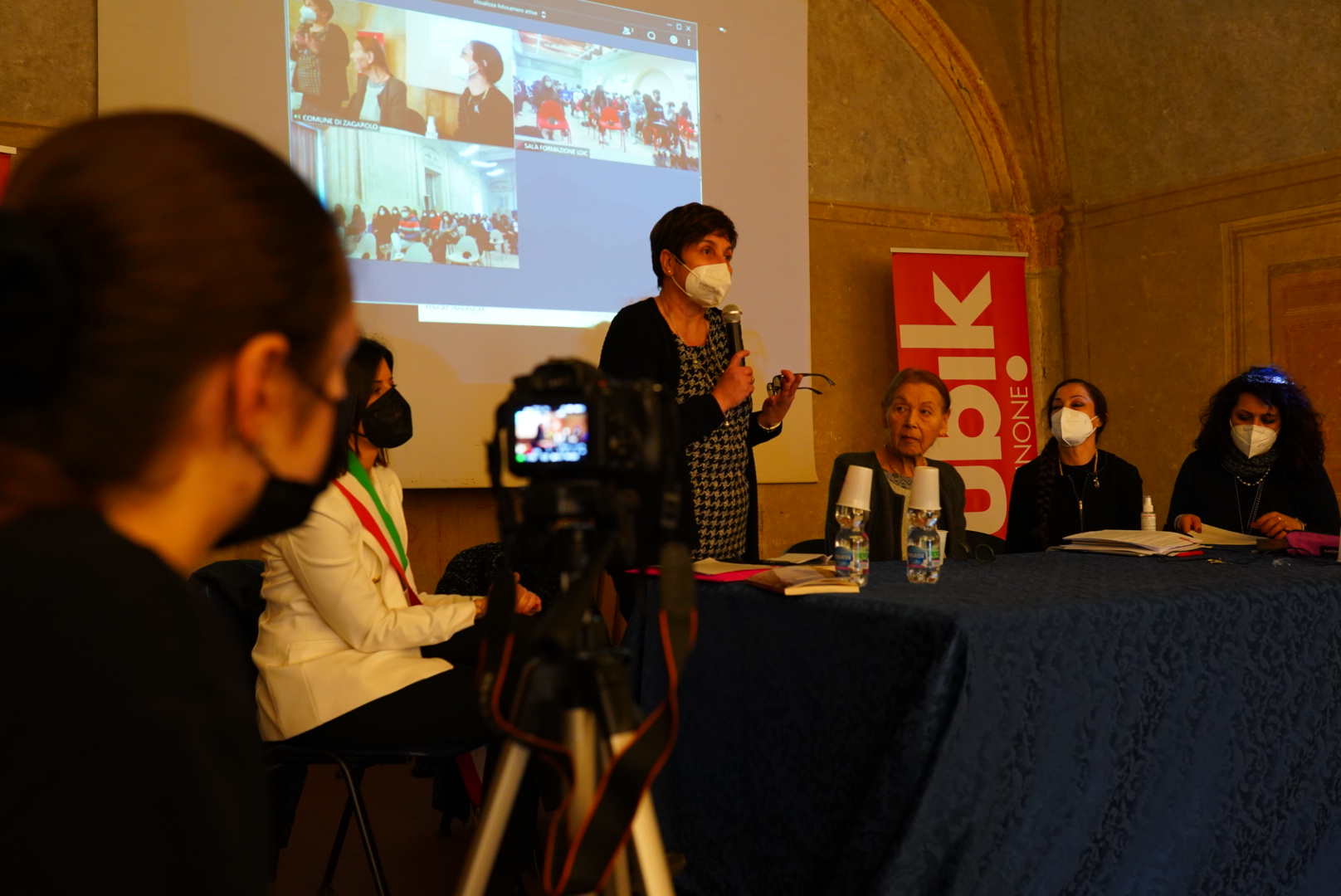 “Fate tesoro di quello che ascolterete – ha spiegato il Sindaco di Zagarolo, Emanuela Panzironi. – Custodite la memoria. Oggi deve essere un ulteriore stimolo a tenere alta l’attenzione. Le guerre continuano ad accadere, a susseguirsi: ne abbiamo l’assoluta certezza. Attraverso il “Viaggio della Memoria” numerosi nostri studenti hanno avuto l’opportunità di vedere da vicino la barbarie dell’essere umano. Dopo Piero Terracina e Sami Modiano, oggi andiamo ad ascoltare le parole e i racconti della scrittrice Edith Bruck, un’altra testimone che ringraziamo con infinito affetto per aver scelto Zagarolo con l’obiettivo di rinnovare la memoria. Desidero ringraziare la Dirigente scolastica Manuela Cenciarini e tutto il corpo docente del Liceo Borsellino Falcone per la costante collaborazione e il percorso di studi che ci ha portato ad oggi”.