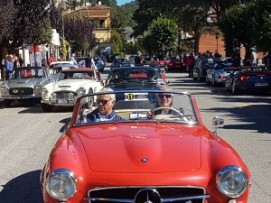 Carsoli – Si è svolta questa mattina a Carsoli la seconda edizione del tour “Casali, conventi e castelli”, una duegiorni con protagoniste le auto d’epoca per un percorso a dir poco entusiasmante. L’organizzazione è stata curata dallo Jaguar Driver’s Club e moltissime sono state le auto che incolonnate per la partenza si sono fatte ammirare in tutto il loro splendore. Presenti: il presidente Nazionale Felice Graziani, il dott. Fabio De Luca organizzatore locale unitamente a Fabrizio Palluzzi. Le auto sono state disposte nell’area resa pedonale per lo svolgimento della manifestazione, e dopo un briefing di apertura sono sfilate davanti al Sindaco di Carsoli Velia Nazzarro che unitamente all’assessore al turismo Alessandra Zazza ha consegnato per ciascuno uno specifico omaggio. Il primo cittadino ha rivolto un caloroso benvenuto a tutta la schiera dei partecipanti. Al tour hanno partecipato grandi marche, con equipaggi venuti un pò da tutta Italia. In tour anche lo stesso Fabio De Luca, Fabrizio Palluzzi, Mario Felici, Massimo Sorani e consorte, la dott. ssa Lucia Di Lorenzo e molti altri autorevoli convenuti. Già dal primo mattino gli ospiti sono stati accolti durante le prime ore di preparazione dell’evento, presso la Chiesa di Santa Maria in Cellis, nella cui suggestiva location l’Architetto Margherita Bernardi ha spiegato con grande interesse le caratteristiche di questo luogo sacro la cui costruzione risale al XIII secolo. Ad maiora.